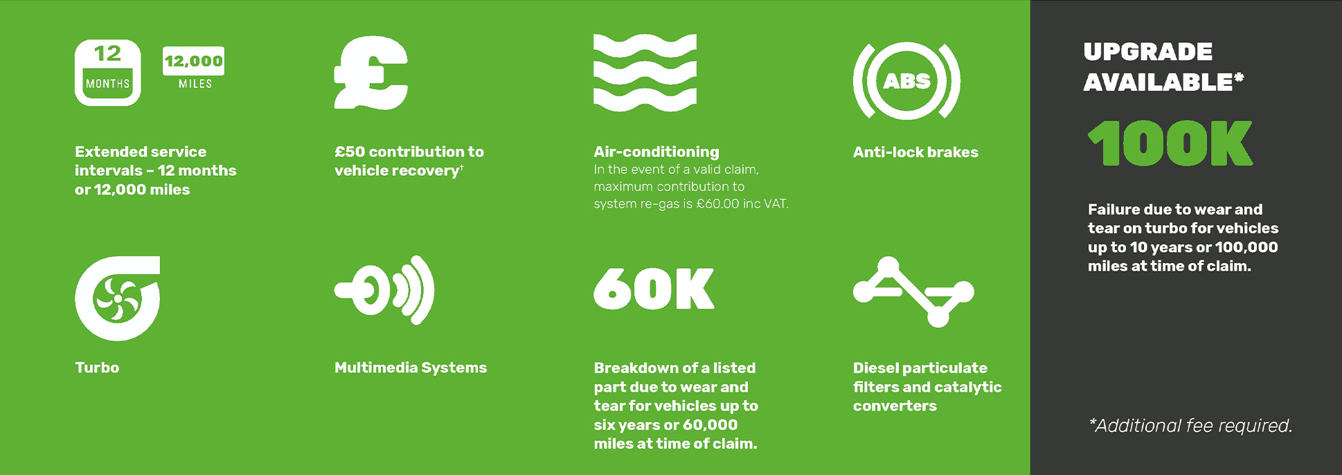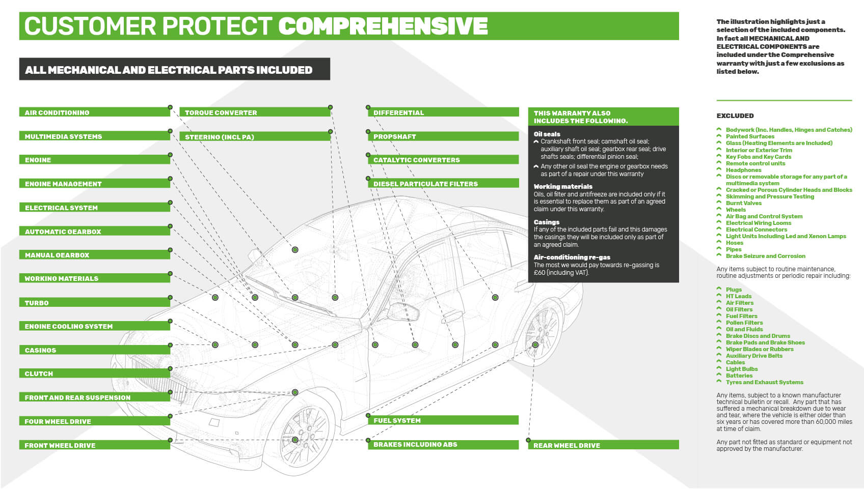 The Comprehensive or Gold Warranty covers against the inconvenience, stress and cost when any Mechanical or Electrical part within your vehicle breaks down. Therefore, minimising the strain on your wallet.